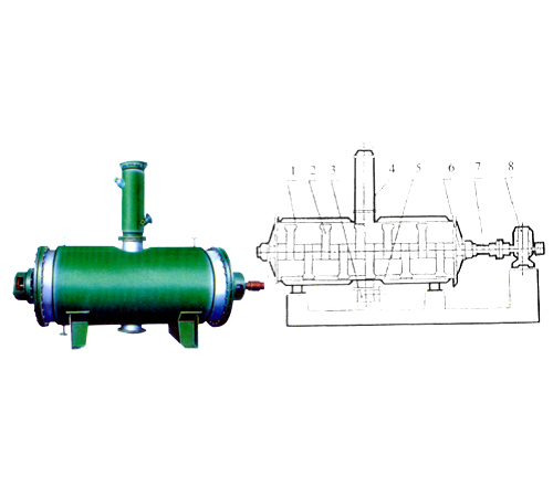 具有結(jié)構(gòu)簡(jiǎn)單,操作方便,使用周期長(zhǎng),性能穩(wěn)定可靠,蒸汽耗量小,適用性能強(qiáng),產(chǎn)品質(zhì)量好,特別適用于不耐高溫、易燃、調(diào)溫下易氧化的膏狀物料的干燥,該機(jī)經(jīng)用戶(hù)長(zhǎng)期使用證明是一良好的干燥設(shè)備。原理:被干燥物料從殼體上方正中間加入,在不斷正反轉(zhuǎn)動(dòng)的耙齒的攪拌下,物料軸向來(lái)回走動(dòng),與殼體內(nèi)壁接觸的表面不斷更新,受到蒸汽的間接加熱,耙齒的均勻攪拌,粉碎棒的粉碎,使物料表面水分更有利的排出,氣化的水分經(jīng)干式除塵器、濕式除塵器、冷凝器,從真空泵出口處放空。結(jié)構(gòu):真空耙式干燥機(jī)的主要部件